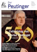 DerMagazinfür Politik, Wirtschaft, Wissenschaft und KulturPeutingerAusgabe 1151. Jahrgang / 2015Bayerischer MonatsspiegelGeburtstag von Konrad Peutinger* 16. Oktober 1465 † 28. Dezember 1547Jan-Dirk Müller: Das Augsburger Universalgenie Reinhard Laube: Gesammeltes Gedächtnis Helmut Zäh: Hirschkuh und HexenhammerRolf Kießling: Martin Luther am LechHorst Möller: Mensch und Politiker Franz Josef Strauß Hugo Müller-Vogg: Bayern hielt Tor zur Einheit offenPostvertriebsstück 82706 | Einzelpreis 7,50 EUR