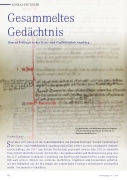 KONRAD PEUTINGERGesammeltes GedächtnisKonrad Peutinger in der Staats- und Stadtbibliothek AugsburgZur umfassenden Gedächtniskultur gehörte für Peutinger auch die Toten-Erinnerung. Wie hier der Nekrolog des Augsburger Barfüßerklosters.Reinhard LaubeSeit über 200 Jahren ist die Arbeitsbibliothek von Konrad Peutinger Teil der Sammlungen der Staats- und Stadtbibliothek Augsburg und gehört seither zu einer Augsburger Gedächt- niseinrichtung, die 1537 vom Rat der Reichsstadt gegründet und im Jahr 2012 in staatlicheTrägerschaft überführt wurde. Im Zeitalter von Säkularisation und Mediatisierung ging eine bis 1547 aufgebaute fulminante Sammlung von Büchern und Handschriften, zu der ursprüng- lich auch weitere Objekte wie steinerne Inschriften, Graphiken und Kuriositäten gehörten, in einer Bibliothek auf, die den Impuls des sammelnden Peutinger institutionell anschaulich macht: Gesammeltes Gedächtnis.10 Der Peutinger 11 / 2015